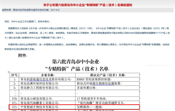 近日,山東省工業(yè)和信息化廳公布了第七批山東省制造業(yè)單項(xiàng)冠軍企業(yè)名單,根源集團(tuán)子公司青島尚德生物技術(shù)有限公司成功入選!